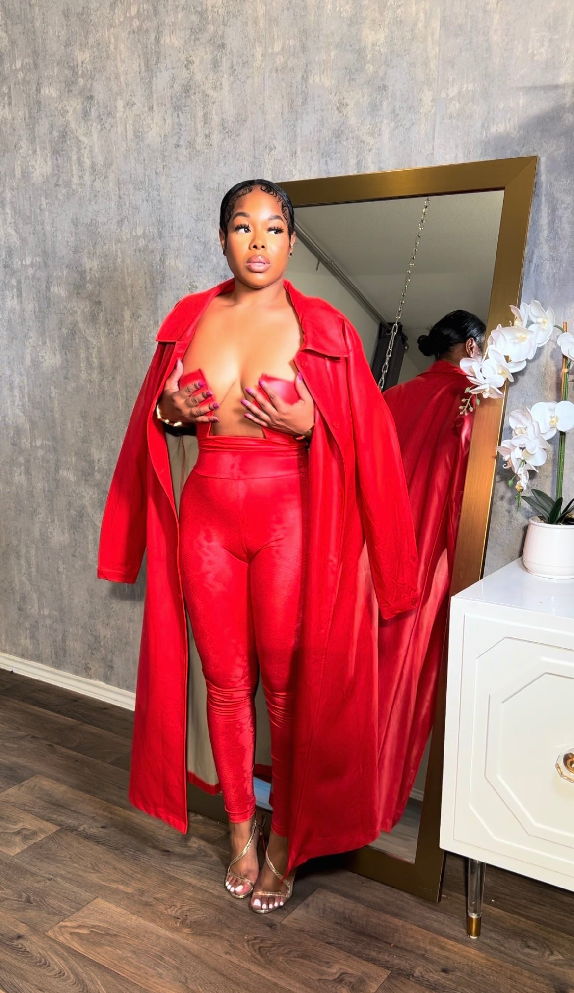 Red leather pull up top